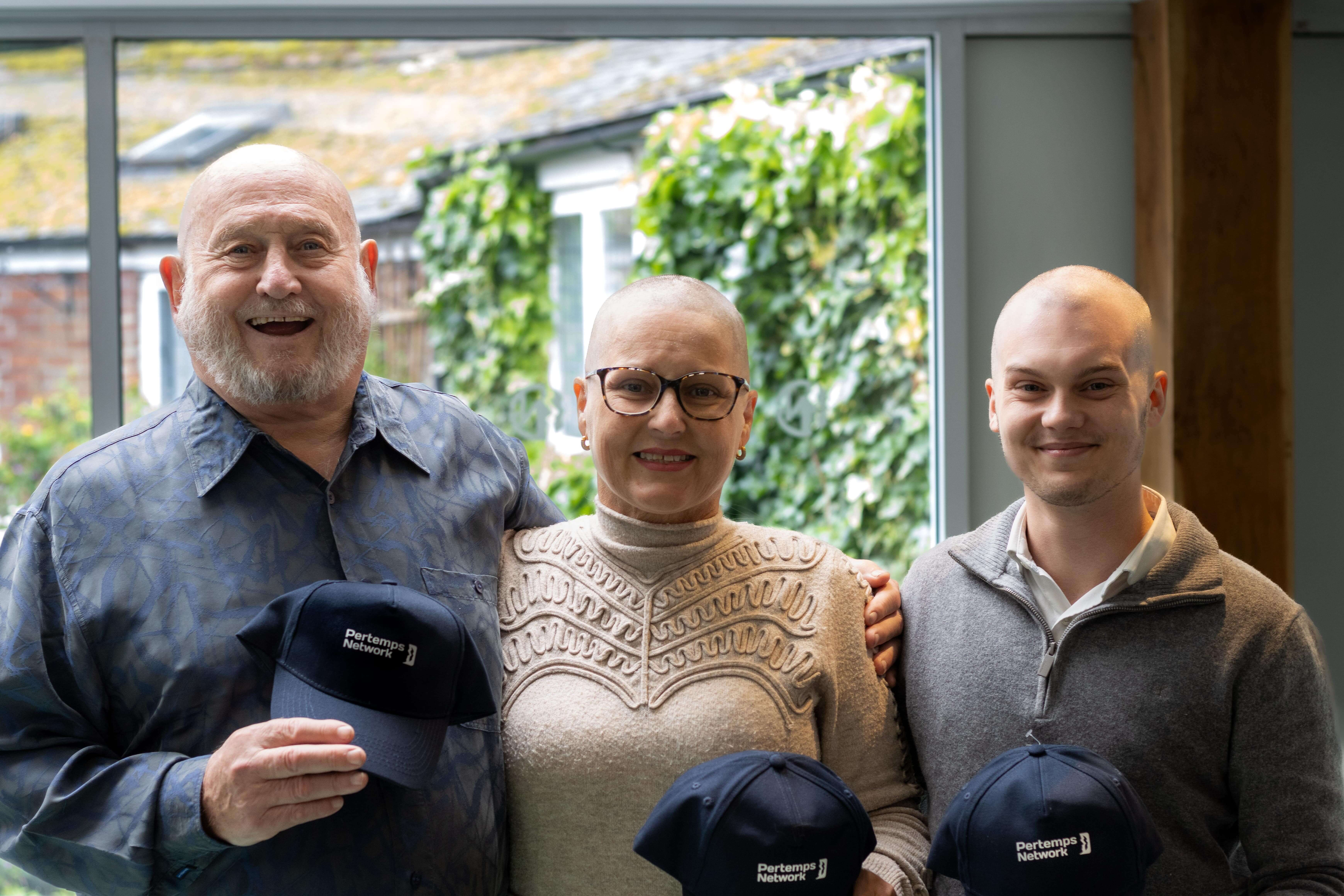 A mum-of-two fighting cancer was joined by her son and his boss in getting their heads shaved to raise money for a cancer charity.